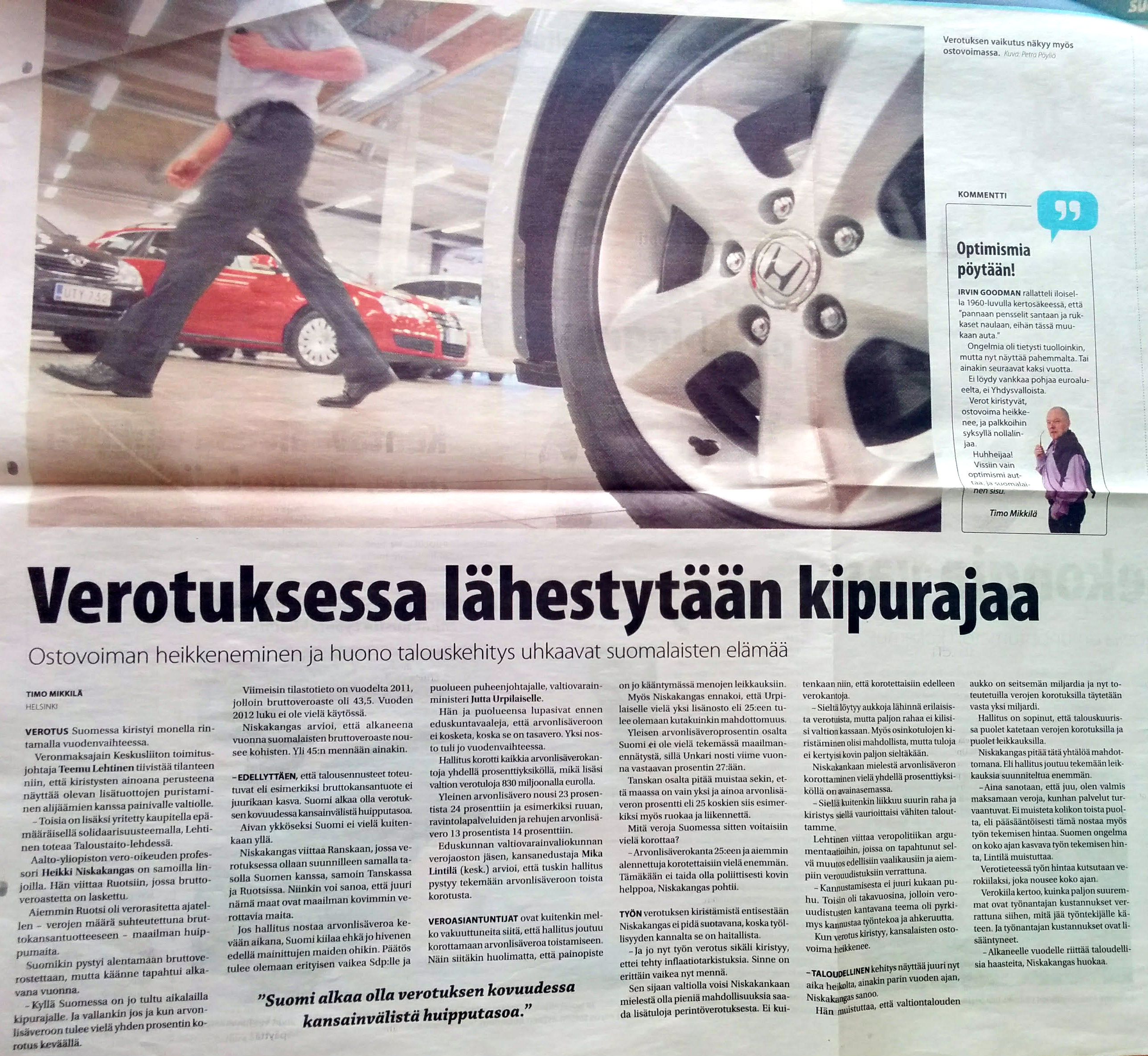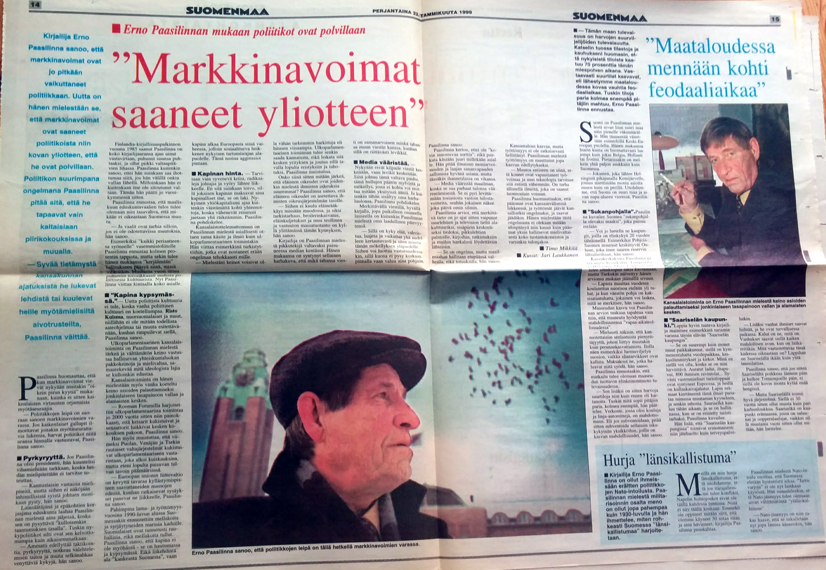 Sanomalehti Suomenmaa oli minulle nopean ja monipuolisen kirjoittamisen korkeakoulu yli 25 vuotta. ”Nakataan Mikkilä seinälle, ja katsotaan, pärjääkö se täällä”, esimieheni totesi vuonna 1990. Hyvin pärjäsin. Pienessä toimituksessa oli pakko kirjoittaa nopeasti ja paljon isoista talouselämän asioista ja ilmiöistä sekä politiikasta ja politiikan sisällöistä – ja historiantutkimuksen teemoista. Mottoni oli: Tasaista tuotantoa – Timo Mikkilä. Paras mahdollinen tausta tietokirjailijan työhön.